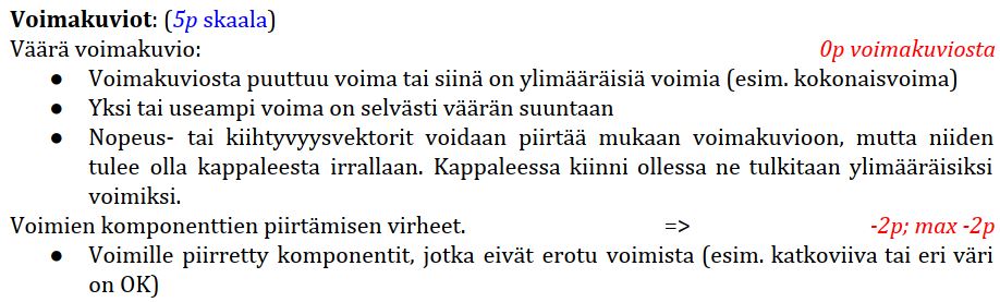 • Kuviosta puuttuu voimia tai siinä on ylimääräisiä voimia.