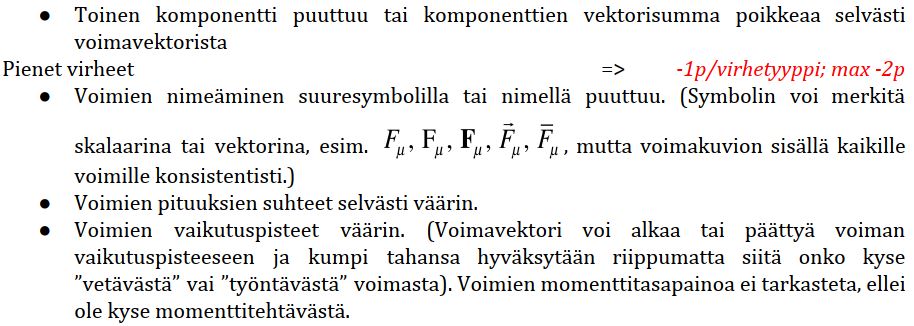 • Tasapainotehtävissä voimien vaikutuspisteet ovat selvästi väärin.