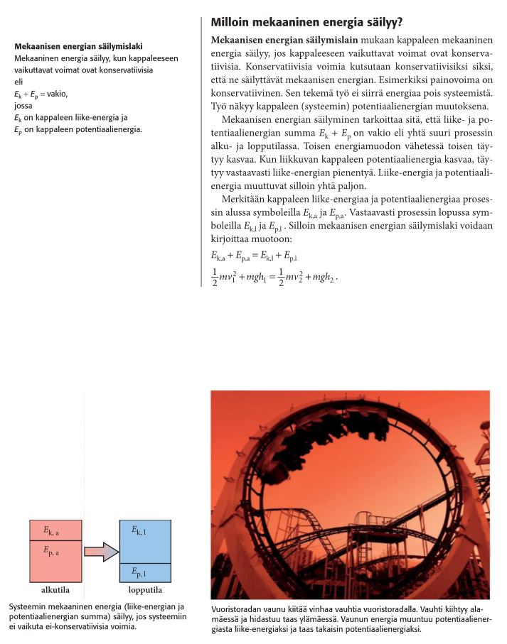Mekaanisen energian säilymislaki ja mekaniikan energiaperiaate