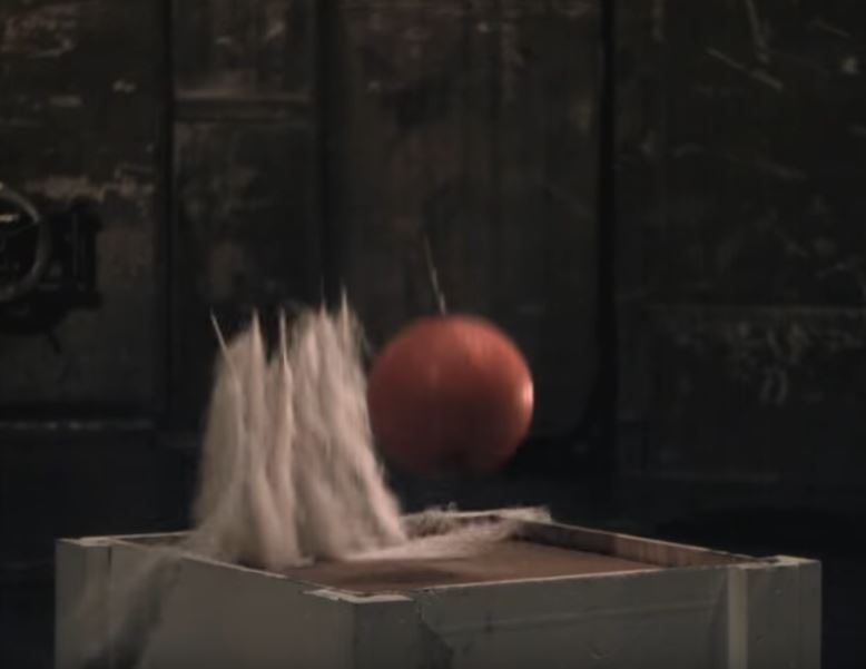 Katso havainnollinen video metallipallon ja höyhenen pudotuksesta valtavassa tyhjiökammiossa: Klikkaa kuvaa