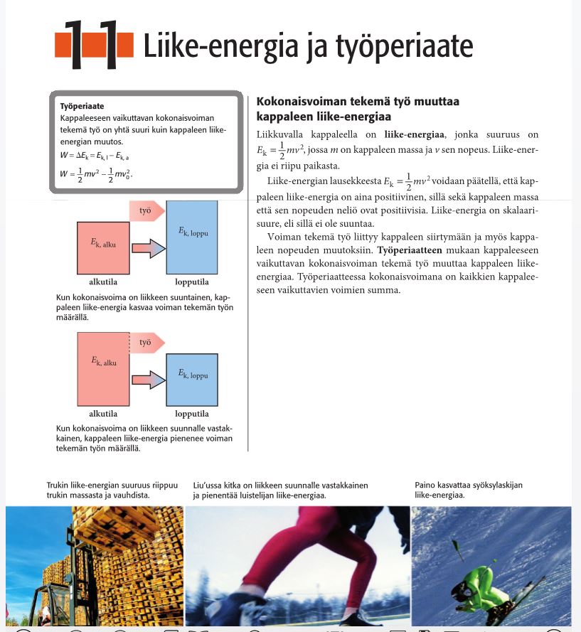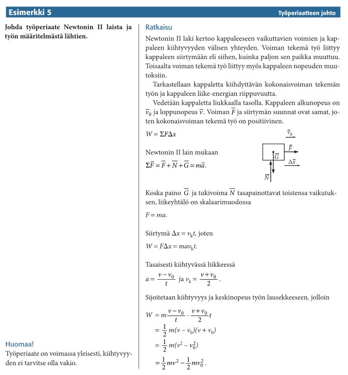 Työperiaatteen mukaan kappaleeseen vaikuttavan kokonaisvoiman tekemä työ muuttaa kappaleen liike-energiaa.